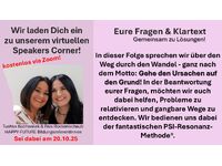 HAPPY-FUTURE Speakers Corner – Gemeinsam zu Lösungen! ![]() Mo 20.10.2025, von 10:00 bis 11:00 Uhr Kategorie : allgemeine Veranstaltungen Veranstaltungsort HAPPY-FUTURE 2100 Korneuburg Preis der Veranstaltung Preis : Kostenlos Vorverkauf : Kostenlos Ermäßigung : Kostenlos weiterführende Informationen Veranstalter Service & Option Beschreibung Vielen Dank an alle Teilnehmer des letzten Speakers Corner und für die vielen positiven Feedbacks. Anhand eurer Fragen lässt sich zusammenfassend feststellen, wie wichtig es ist, in dieser Zeitphase bewusst, fokussiert bzw. aktiv zielgerichtet zu sein und zu bleiben. Bewusstseinstransformation ist kein Abenteuer, welches man nur dann zulässt, wenn einem danach ist. Nein! Es ist eine tägliche positive Herausforderung (Chance), dich selbst ehrlich zu erkennen - mit allem Licht und Schatten. Und wie es viele von euch selbst schon angesprochen haben, ist jetzt die beste Zeit dafür, nicht mehr alles "durchgehen" zu lassen bzw. einfach über sich ergehen zu lassen, nicht aus Härte, sondern aus Klarheit in Bezug auf Ursache & Wirkung. Ganz nach dem Motto: Gehe den Ursachen auf den Grund! Probleme leichter machen & lösen mit Hilfe der PSI-Resonanz-Methode® und Wissen aus der PSI-Forschung. Ab sofort neu: Wir bieten eine virtuelle Anlaufstelle (kostenlos) für alle, die Antworten, Tipps und Erklärungen suchen in gesundheitlichen, zwischenmenschlichen und entwicklungsbedingten Problemstellungen. Was ist HAPPY-FUTURE Speakers Corner? Unser virtueller HF-Speakers Corner ist mehr als nur eine Plattform für Austausch – es ist ein Ort, an dem Probleme ernst genommen und aus Sicht der PSI-Forschung bearbeitet werden. Wir als HAPPY-FUTURE Bildungsreferentinnen wollen mit diesem Format einen sicheren und unterstützenden Rahmen bieten, in dem jede Person – Jung & Alt - mit ihren Sorgen und Problemen willkommen ist. Unser Ansatz Im virtuellen HAPPY-FUTURE Speakers Corner wird der respektvolle Austausch großgeschrieben und wir werden – wie immer – dabei helfen, Probleme zu relativieren und gangbare Wege zu entdecken. Wir bedienen uns dabei der fantastischen PSI-Resonanz-Methode®. Unser Ziel - Von der Verzweiflung zum Handeln Verzweiflung entsteht häufig aus dem Gefühl der Ohnmacht oder Überforderung. Hier setzt unser Angebot an. Wir zeigen auf, dass auch kleine Schritte und Maßnahmen zählen und dass jeder Mensch seelische Ressourcen zur Optimierung bzw. Lösung besitzt, die einfach nur entfacht bzw. in Resonanz gebracht werden müssen. Im Speakers Corner geht es nicht darum, perfekte Antworten zu finden, sondern hilfreiche Impulse zu bekommen und gemeinsam den nächsten, oft so wichtigen, Schritt zu tun. Bewusstseins-Transformation und PSI-Forcierung sind und werden als Haltegriff dienen. Unsere Philosophie Unser HAPPY-FUTURE Speakers Corner ist ein virtueller Raum, in dem Probleme nicht beschönigt, sondern ernst genommen werden. Der vorherrschende Zeitgeist zeigt auf, dass Angst vor Stigmatisierung oft der Grund ist, warum sich Menschen nicht nach neuen Lösungsmöglichkeiten bzw. -Ansätzen umsehen und lieber im Problem verharren, oder weiterhin auf nicht bewährte Maßnahmen setzen. Ebenso wollen wir mit dieser neuen Plattform gemeinsam auch gegen die zunehmende Isolation vorgehen. Mutlosigkeit und Einsamkeit sind häufige Begleiter von Problemen. In unserem HF-Speaker Corner erleben Sie, dass es immer Hoffnung gibt. Und noch mehr: Sie werden Hindernisse, Probleme als Chance zur transformationsfördernden Persönlichkeitsentwicklung erkennen. Wir freuen uns auf Sie! Riva Rockenschaub & Tushka Kuchwalek (HAPPY-FUTURE Bildungsreferentinnen) Termin für unseren virtuellen HAPPY-FUTURE Speakers Corner ist am Mo, 20. Oktober 2025, 10 Uhr (Dauer ca. 1 Stunde) Helfen Sie mit und schreiben Sie uns vorab schon Ihre Frage, bzw. Problemstellung kurz & prägnant unter office@happy-future.at, Kennwort: Speakers Corner. So können wir bei unserem ersten LIVE schon darauf eingehen, und Sie können (wenn gewünscht) anonym bleiben. Aber natürlich besteht auch die Möglichkeit der direkten Fragestellung. Die kostenlose Anmeldung zum HAPPY-FUTURE Speakers Corner finden Sie unter: https://events.zoom.us/ev/Ahzxnd7Ma7FkRhKtyR49S4TzEzWkjuyXUabwrj7yNfRGAy4MhH8B~ApNdl7cNX5lyS8da5QwPJJf_pGgAQQHXys-ZS2qR5JmV8C4MZs2iQpCg9g | Jetzt Ihre Veranstalungen KOSTENLOS in unserem Veranstaltungskalender Netzwerk eintragen! --> weitere Informationen Dir gefällt die Region Donauraum? Unser Netzwerk Wussten Sie, das Ihre Veranstaltungen nicht nur hier auf Veranstaltungskalender.net erscheinen, sondern auch auf vielen weiteren Internetadressen unseres Domain Netzwerkes und auf den Internet Adressen unserer Partner! Wussten Sie, das Sie mit Ihrem Veranstaltungskalender.net Account nun auch kostenlose Inserate und Kleinanzeigen auf unserem Inserate Marktplatz www.inserate.net aufgeben können. ![]() |